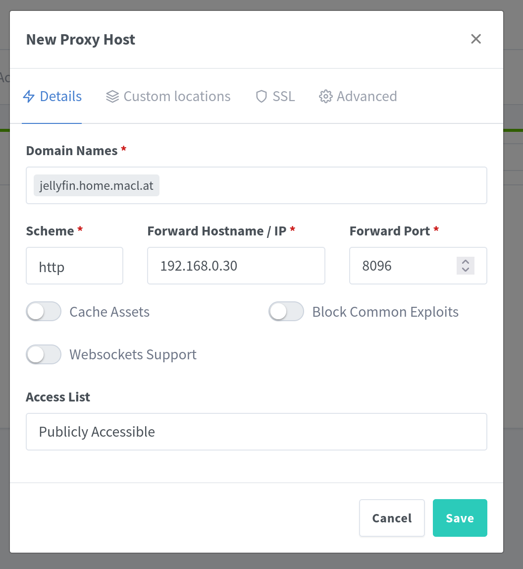 Damit lösen alle Subdomains intern auf und NPM leitet sie per Reverse Proxy an die entsprechenden Services weiter. Die Zweigleisigkeit mit pve.h.domain.com und pve-ui.h.domain.com braucht es, damit sowohl Browser Zugriff als auch SSH mit dem Domainnamen.
