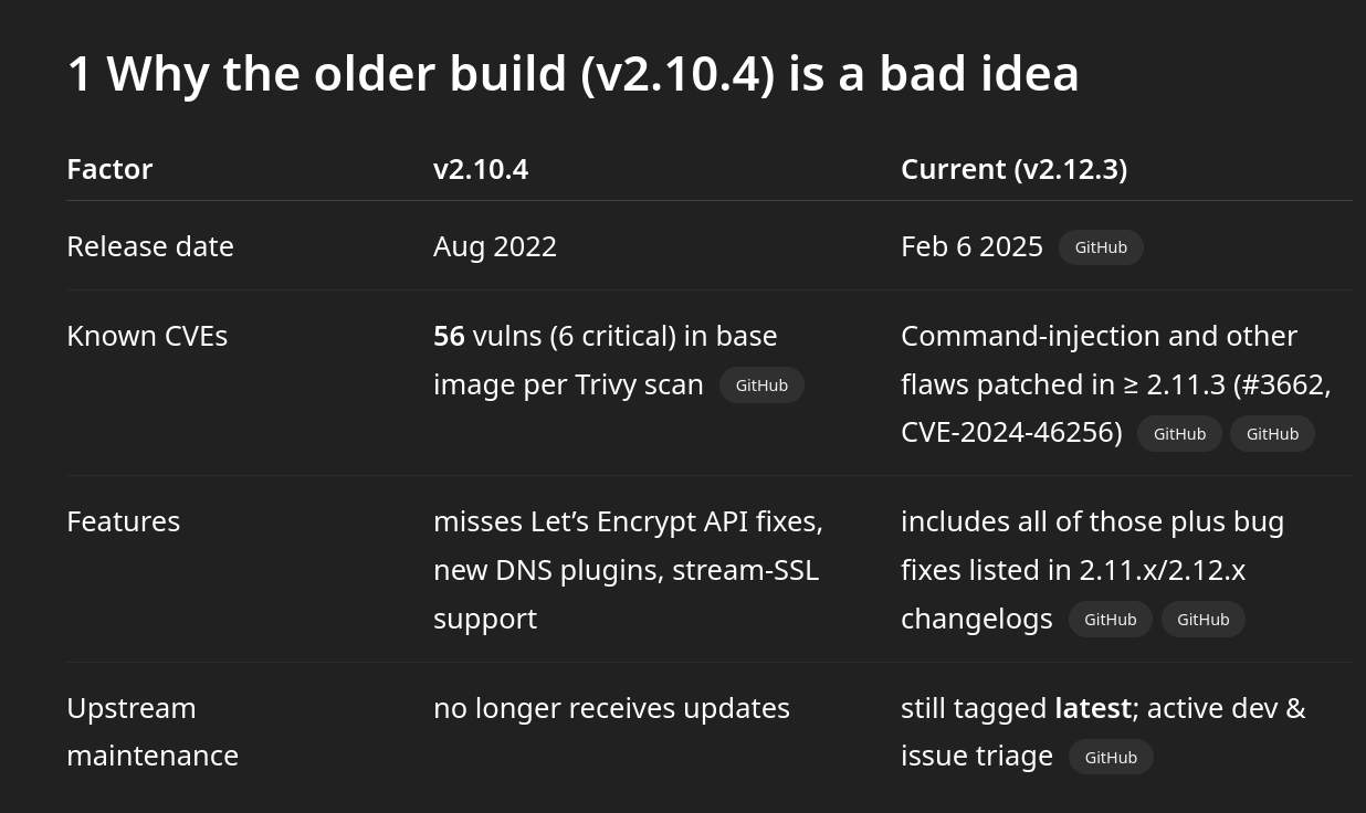 Die alte Version sollte man keinesfalls installieren, das Model o3 meint dazu (Quelle):