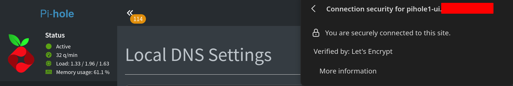 Damit das Werkl auch läuft müssen die Subdomains in Pi-Hole als Local DNS Records angelegt werden, damit sie intern zur richtigen IP-Adresse auflösen. Das geht im Pi-Hole WebUI unter Local DNS und dann DNS Records: