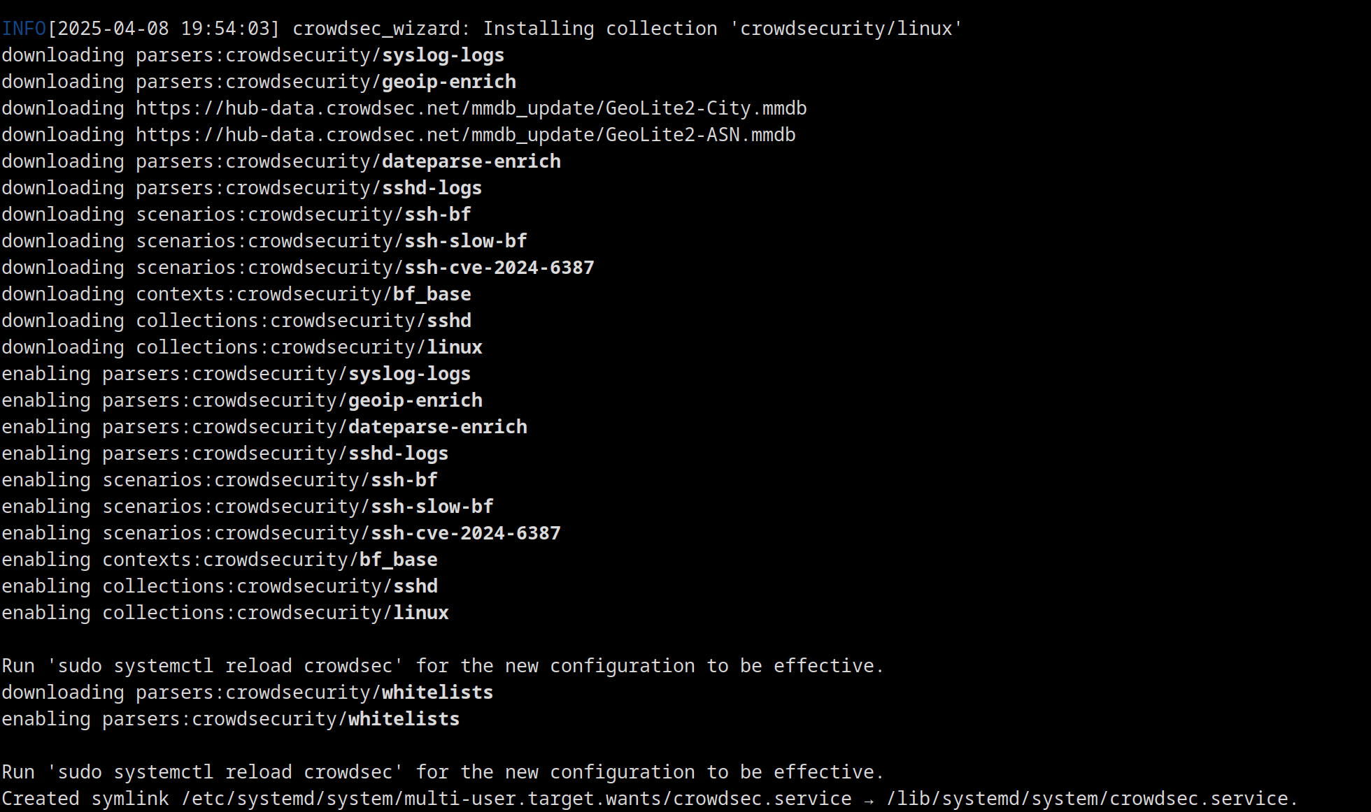 Als nächstes Installieren wir den Crowdsec-Server mit: