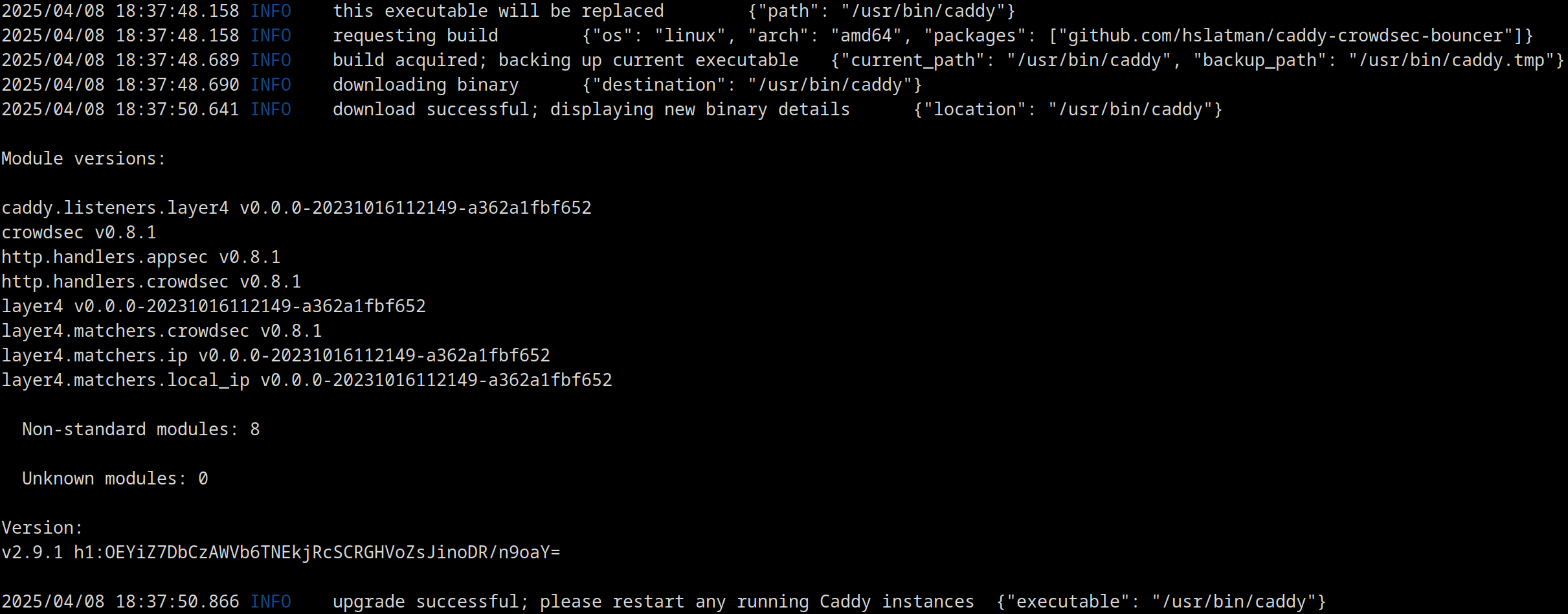 caddy add-package github.com/hslatman/caddy-crowdsec-bouncerUpdate bricht caddy add-package: also Caddy selbst kompilieren