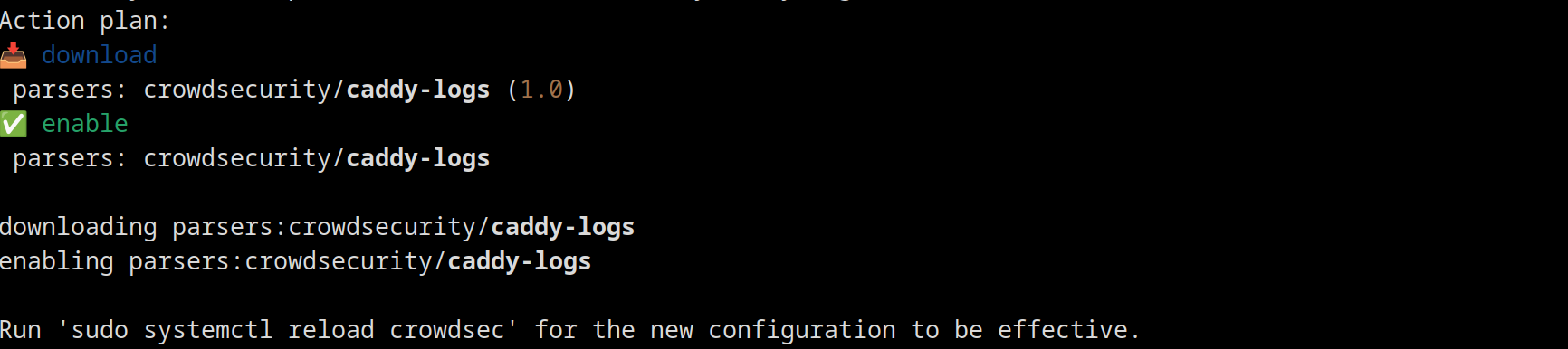 cscli parsers install crowdsecurity/caddy-logsKonsolenausgabe: